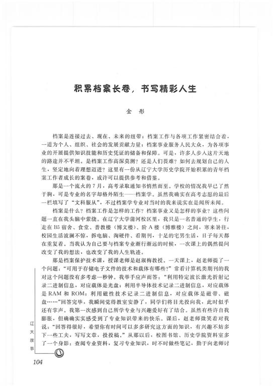金彤(05级本科)-《积累档案长卷,书写精彩人生》