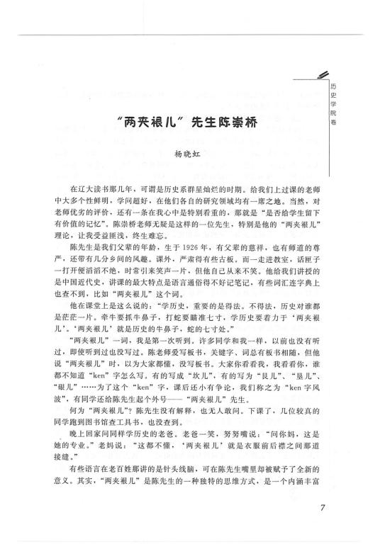 杨晓虹(78级本科)-《“两夹裉儿”先生陈崇桥》