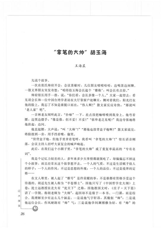 王海晨(77级本科)-《“拿笔的大帅”胡玉海》