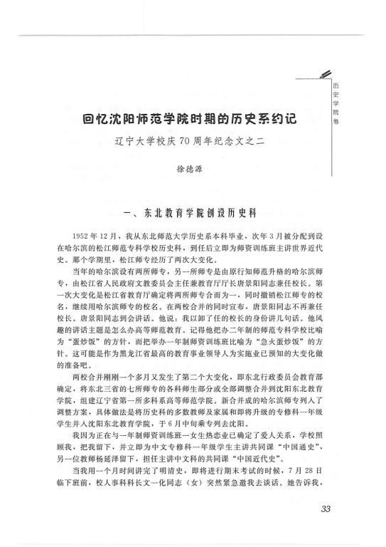 徐德源-《回忆沈阳师范学院时期的历史系约记--辽宁大学校庆70周年纪念文之二》